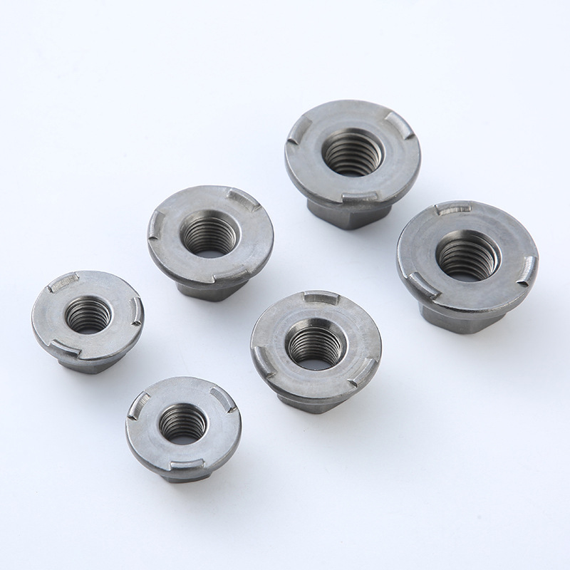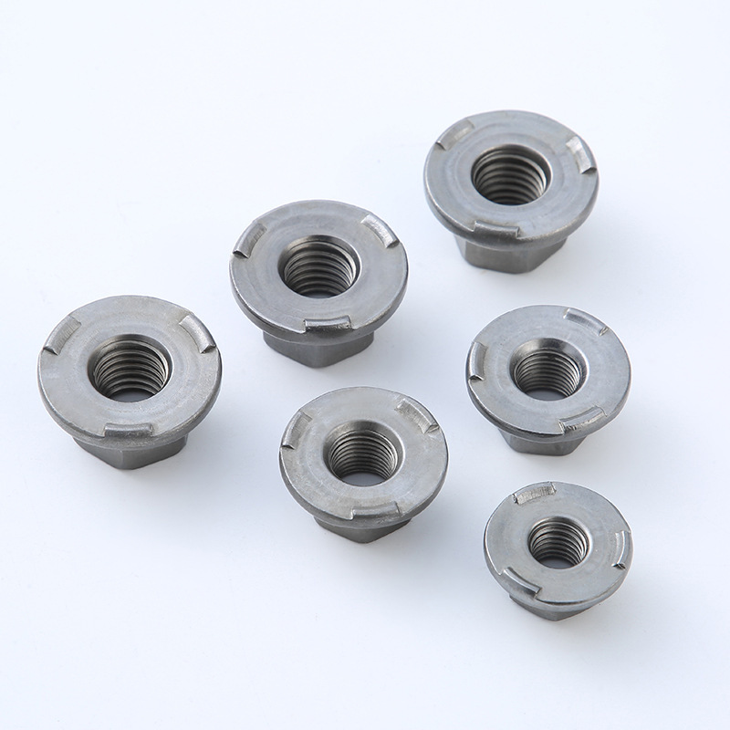 Kovové šesťhranné prírubové matice s upínaním