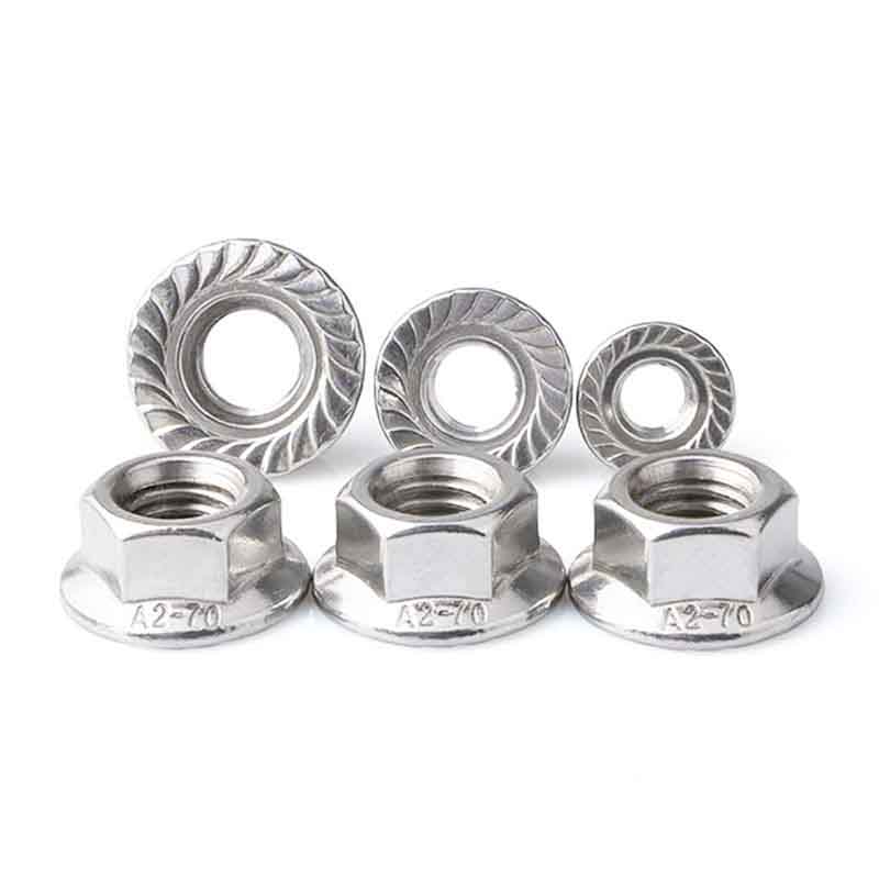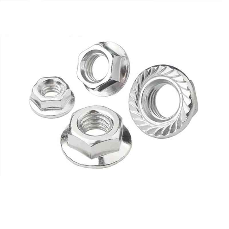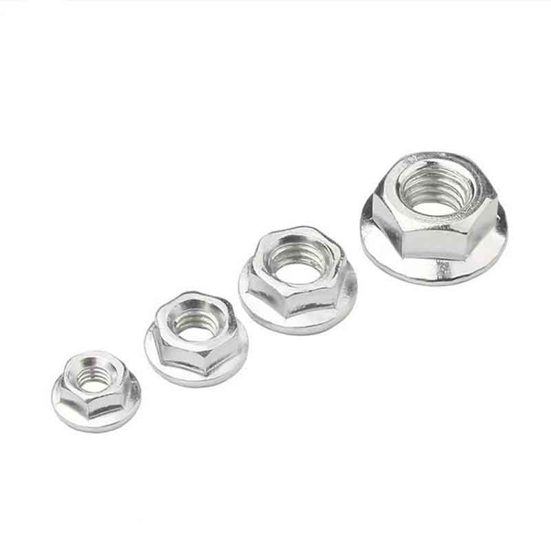 Vysokoúčinné šesťhranné matice s prírubou spĺňajú bežné medzinárodné normy, ktoré stanovujú ich presné veľkosti a mechanické vlastnosti. Medzi hlavné normy patrí ISO 4161 (predtým DIN 6926) a ASME B18.2.2. Veľkosti pokrývajú veci, ako je šesťhranná šírka cez plochy (AF), celková výška, priemer príruby a veľkosť/rozstup závitu (napríklad M12x1,75). Priemer príruby je väčší ako šesťhranná časť, preto pomáha rozložiť zaťaženie. Dodávajú sa v bežných metrických a imperiálnych veľkostiach závitov, zvyčajne od M5/M6 do M36 alebo 1/4" až 1,5", takže fungujú pre rôzne inžinierske potreby.