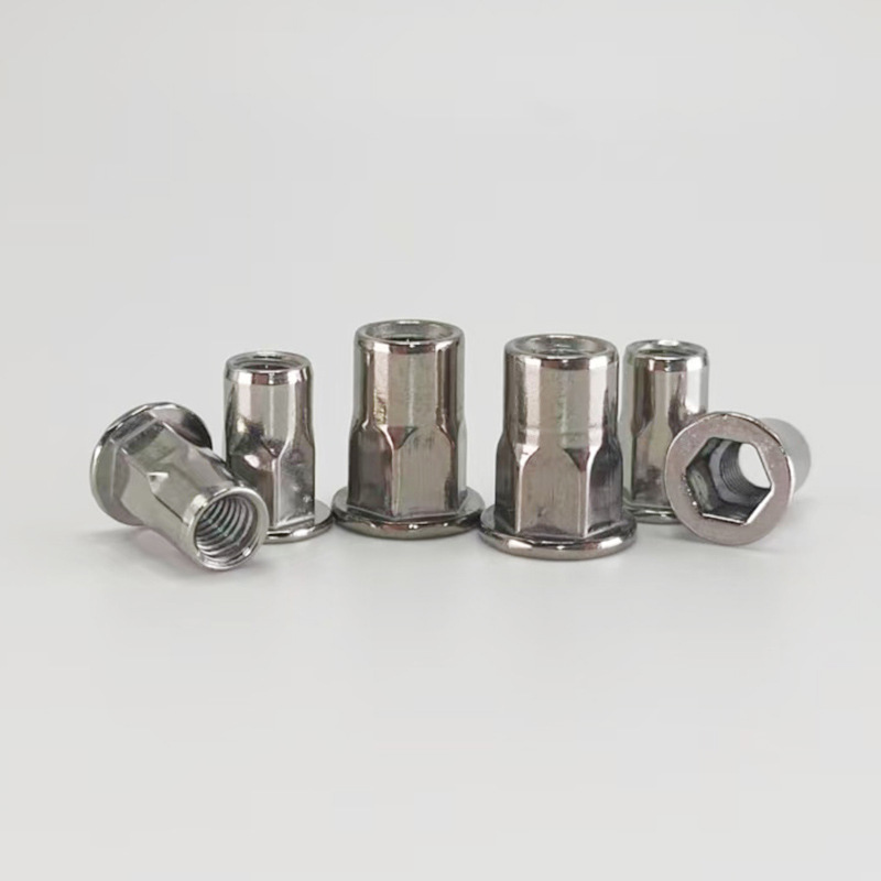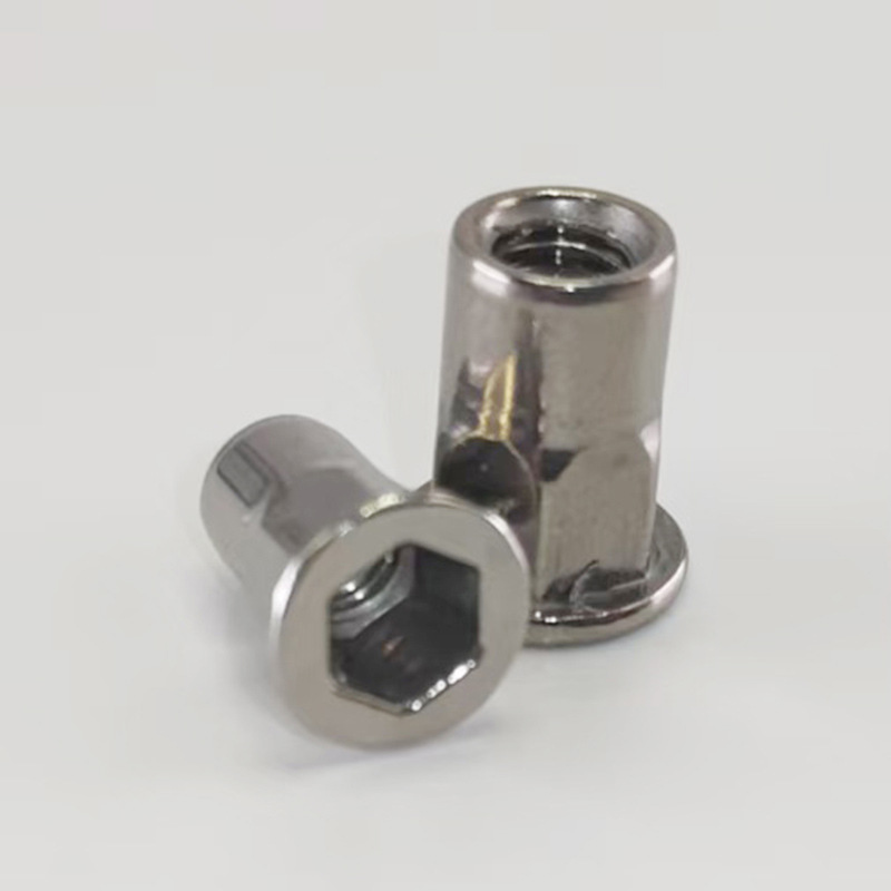 Spoľahlivá šesťhranná nitovacia matica sa často používa v priemysle, ako je automobilový priemysel, letecký priemysel, železnica a domáce spotrebiče. Slúži na vytváranie silných závitových upevňovacích bodov na plechoch a rúrkach. Je vyrobený špeciálne pre stiesnené priestory, kde môžete dosiahnuť len z jednej strany – takže funguje dobre aj pre slepé aplikácie. Tento spojovací prvok je vhodný pre tenké materiály (medzi 0,5 a 6 mm). Pri používaní nemusíte zvárať ani klepať vnútorné závity a po nainštalovaní sa ľahko neotáča.